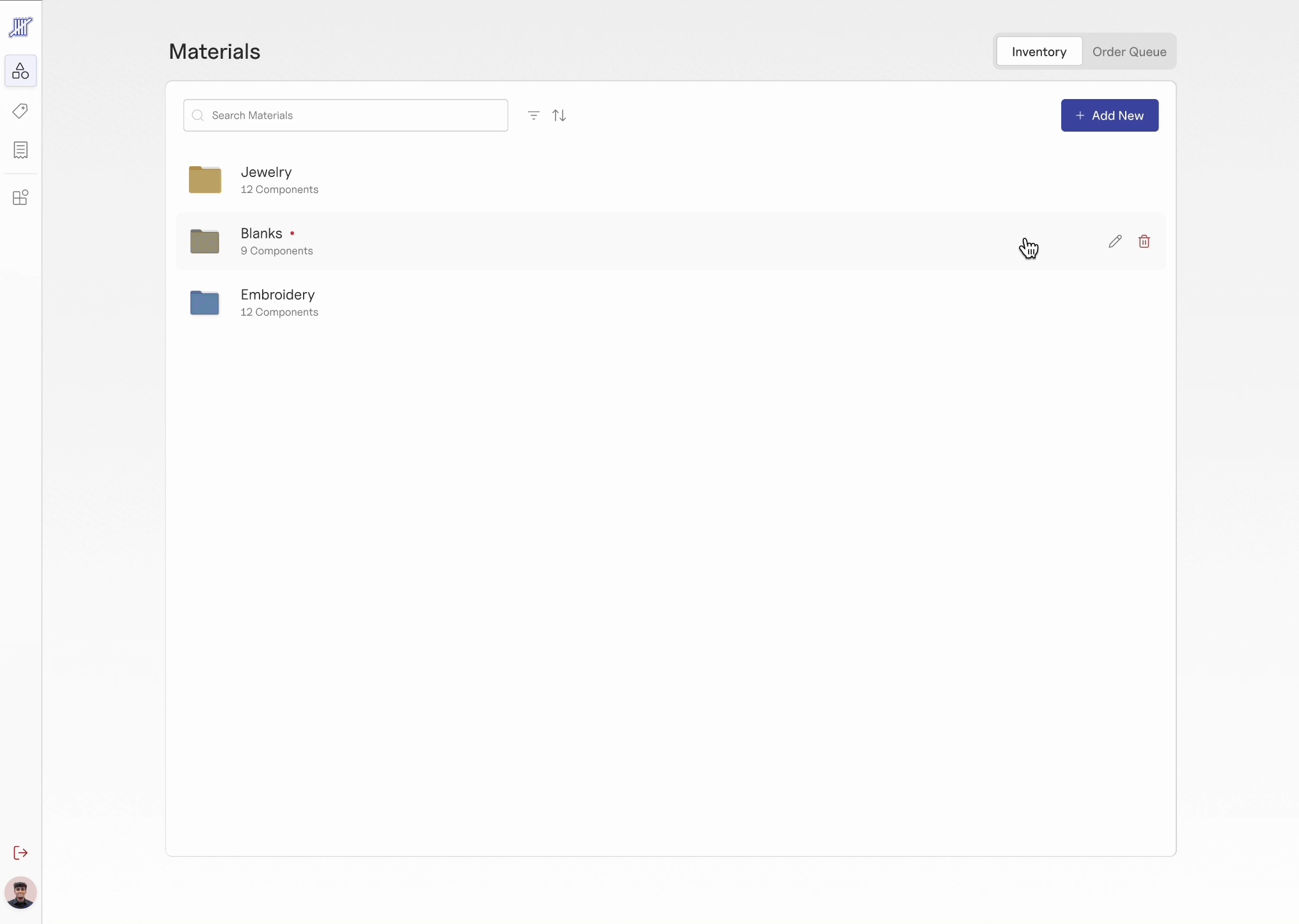 Manage inventory by materials