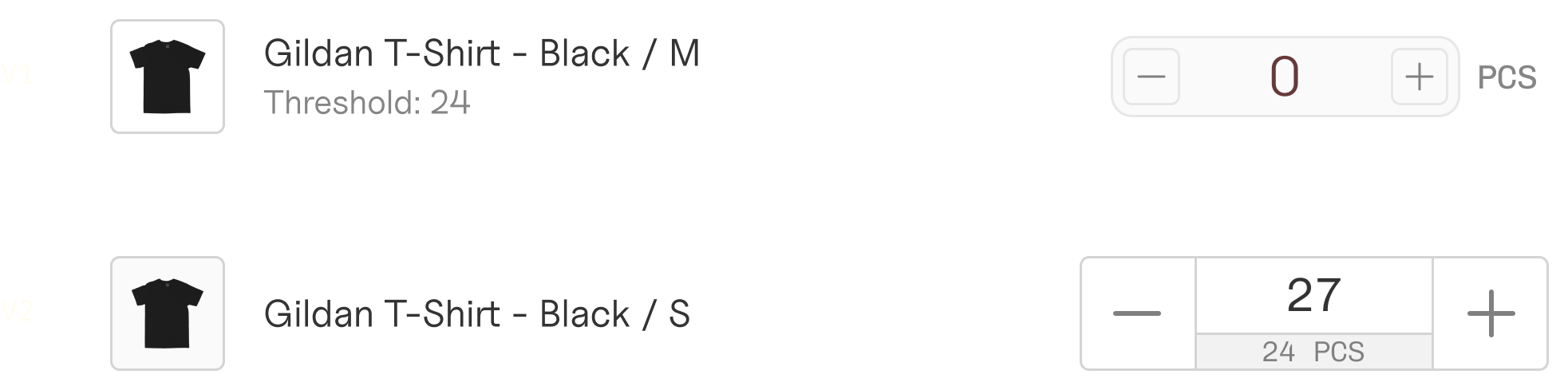 V2 implements buttons with larger touch targets and puts relevant information (e.g. safety stock thresholds) in closer proximity to inventory levels.