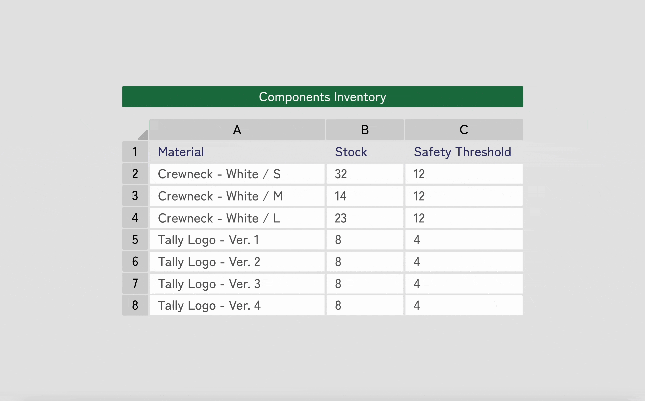 Existing inventory tools track complete SKUs, leaving made-to-order businesses armed with just spreadsheets to track raw materials. The closest alternatives are enterprise resource planning (ERP) tools, which are far too expensive and robust for small businesses.